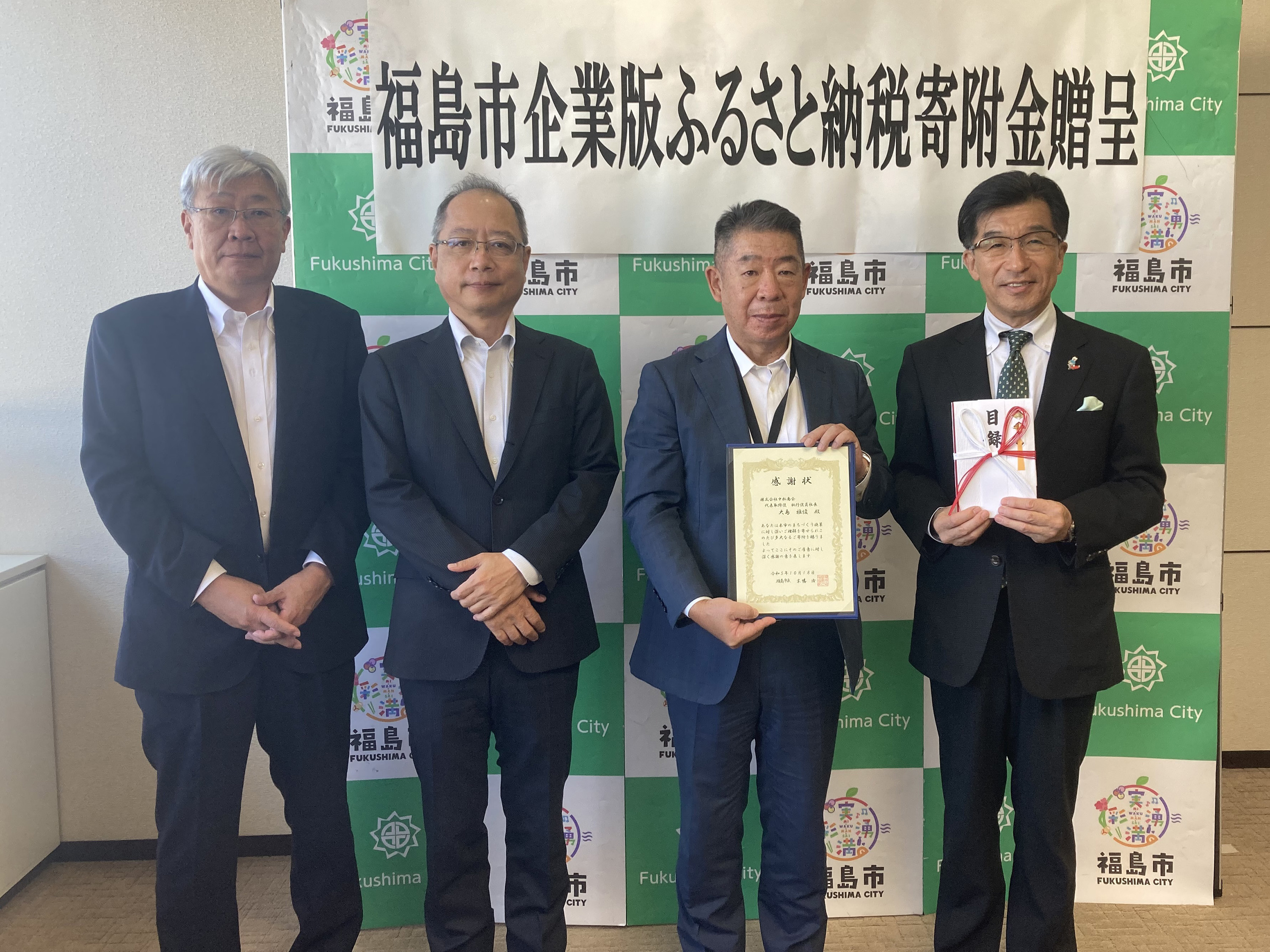 2023年10月18日、福島市(外部サイトへリンク)に対して企業版ふるさと納税制度を用いた寄付を実施し、福島市役所での贈呈式に出席致しました。 当社は同市が掲げる「特色ある幼児教育・保育プロジェクト推進事業」に賛同し、育児環境の充実に寄与出来ればとの思いから贈呈させて頂きました。 中松商会はこれからも地域に根差した企業として、地域とともに発展して参ります。
